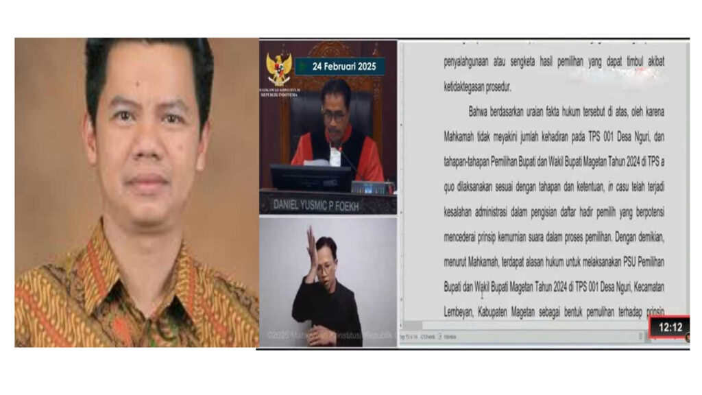 Mahkamah Konstitusi (MK) mengeluarkan keputusan yang menggugah perhatian publik terkait Pemilihan Bupati dan Wakil Bupati Magetan 2025. Dalam sidang yang digelar pada 24 Februari 2025, MK memutuskan untuk melakukan Pemungutan Suara Ulang (PSU) di empat Tempat Pemungutan Suara (TPS) di Kabupaten Magetan.